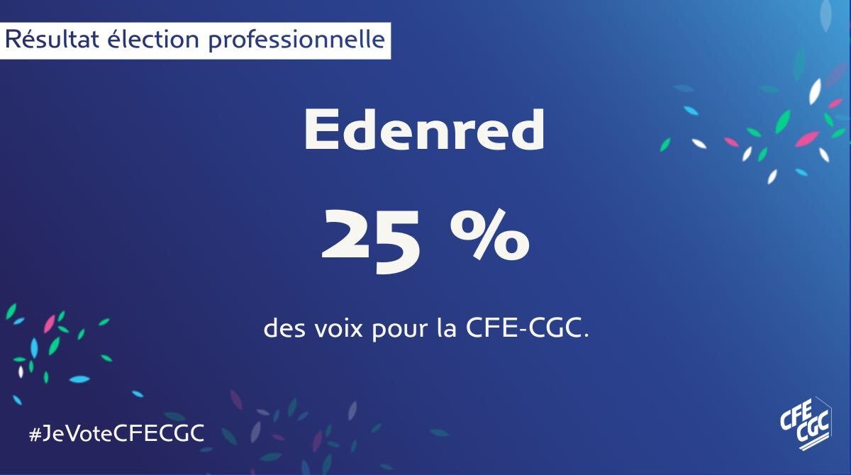 Les résultats des élections CSE sont tombés ! La CFE-CGC est le deuxième syndicat représentatif d'Edenred France avec 25 % des voix.