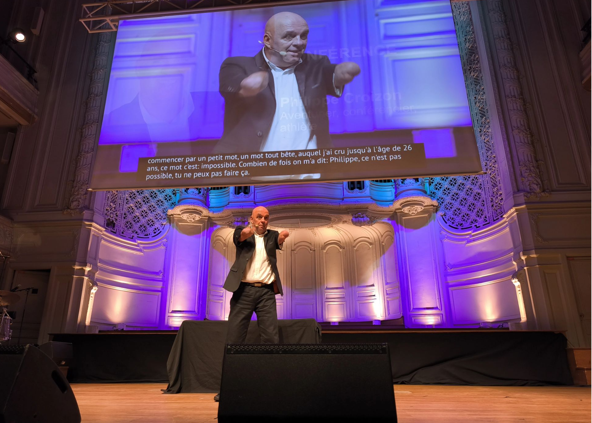 Après la table ronde précitée, la soirée a été marquée par le témoignage émouvant, bouleversant, inspirant, de Philippe Croizon, amputé des quatre membres après un accident domestique (« 20 000 volts ont traversé mon corps ») en 1994, à l’âge de 26 ans. Connu pour ses exploits sportifs, en particulier la traversée à la nage de la Manche le 18 septembre 2010, l’écrivain et conférencier a, durant 45 minutes, évoqué son parcours empreint de résilience et de détermination, et la place du handicap dans l’espace sociétal et le monde du travail. Une leçon de vie avec, à la clé, une standing ovation de la salle.