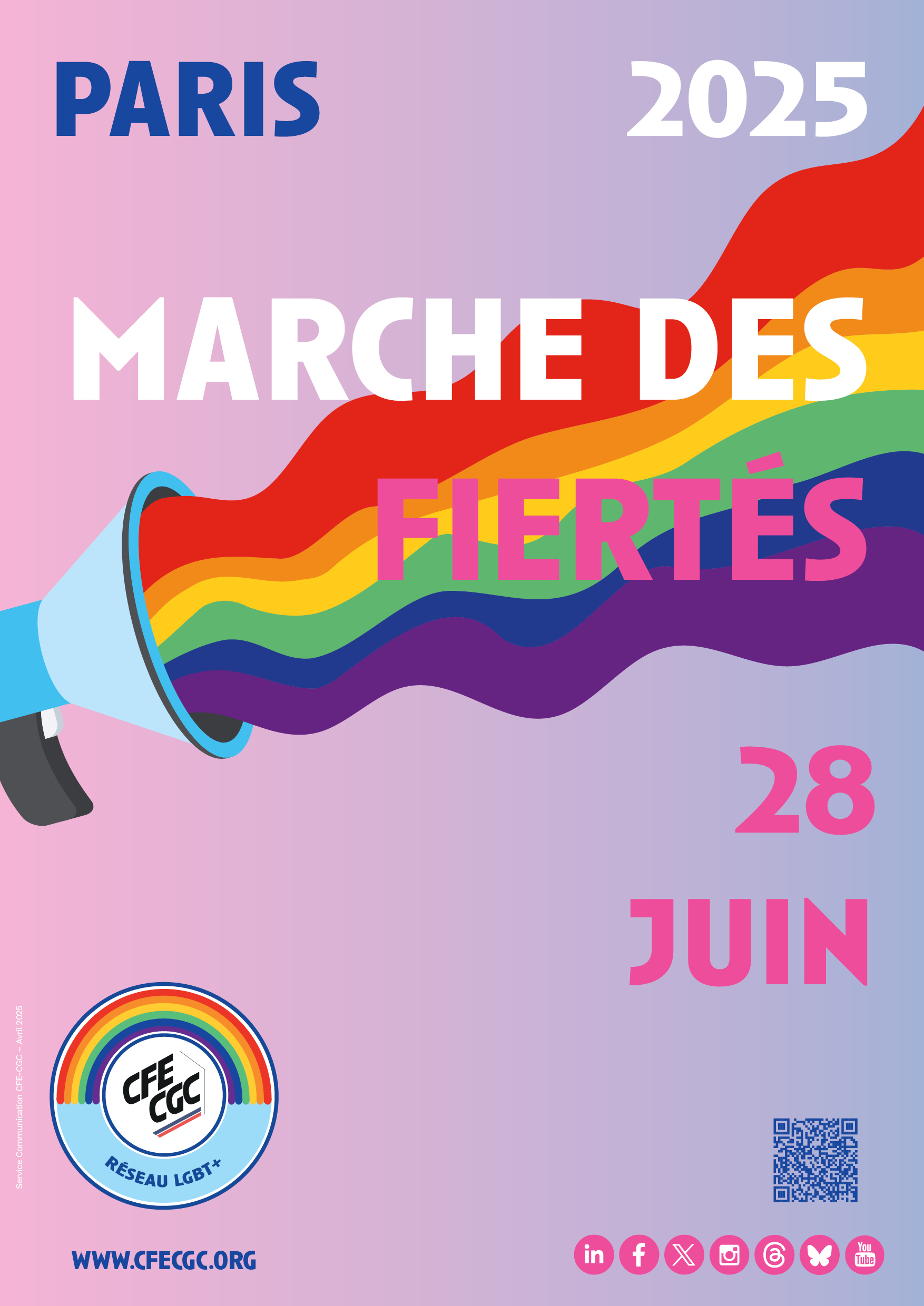 Pour la première fois, la CFE-CGC va participer à la Marche des fiertés de Paris. Aux côtés du président François Hommeril et des militants engagés, affirmons ensemble notre attachement à l’égalité, à la diversité, à la lutte contre toutes les discriminations.