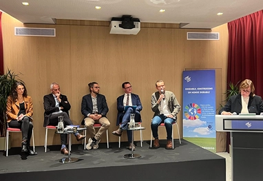 À cet effet, Madeleine Gilbert, secrétaire nationale CFE-CGC à la transition vers un monde durable et animatrice des débats (à droite sur la photo, au pupitre), avait invité :