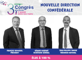 A l'unanimité (moins 39 votes blancs), François Hommeril a été réélu, à Deauville, pour un second mandat à la présidence de la CFE-CGC. Le nouveau trio exécutif est complété par Gérard Mardiné (secrétaire général) et Jean-Philippe Tanghe (trésorier national).